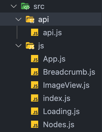์ด์ jsํ์ผ์ ํ๋์ฉ ์์ฑํด๋ณด์. ๋๋ ์๋์ฒ๋ผ ํ์ผ๊ตฌ์กฐ๋ฅผ ๊ตฌ์ฑํ๋ค.
