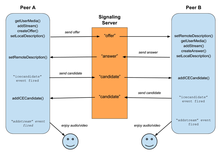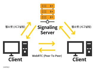 ๊ทธ๋ฌ๋ WebRTC๋ ์๊ทธ๋๋ง ์๋ฒ๋ฅผ ํตํด ์๋ก์ ๋คํธ์ํฌ ์ ๋ณด๋ค์ ๋ฐ๋๋ค. (์๊ทธ๋๋ง ์๋ฒ๋ ๋จ์ํ ํด๋ผ์ด์ธํธ์ ๋คํธ์ํฌ ์ ๋ณด๋ฅผ ์ ๋ฌํด์ฃผ๋ ๋งค๊ฐ์ ์ญํ ์ ํ๋ค.)