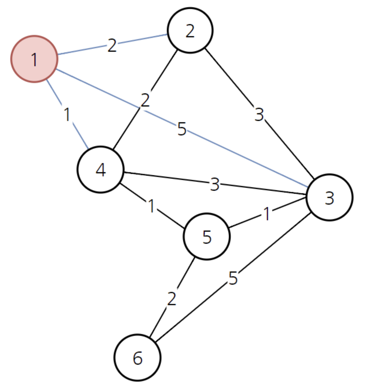 5๋ฒ์ ๊ฑฐ์ณ 6๋ฒ์ผ๋ก ๊ฐ ๊ฒฝ์ฐ, (5๋ฒ๊น์ง ๋น์ฉ 2 + 5๋ฒ์์ 6๋ฒ๊น์ง ๋น์ฉ 2)=4 < Infinity ์ด๋ฏ๋ก